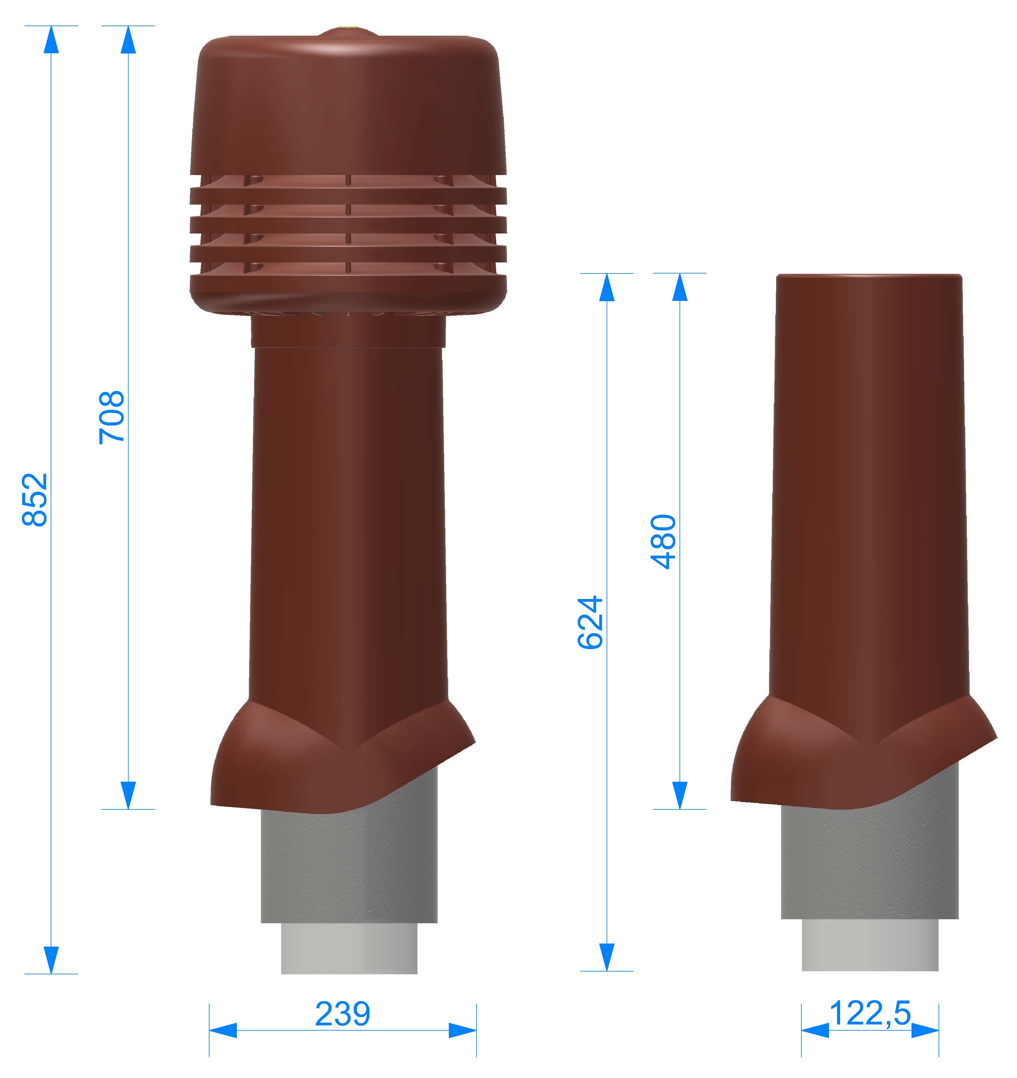 Выход вентиляционный ИЗЛ-125/700 относится к классу изолированных, утепленных вентиляционных выходов, предназначенных для организации естественной вентиляции помещений. Он состоит из двух частей: трубы и колпака Döcke PREMIUM.